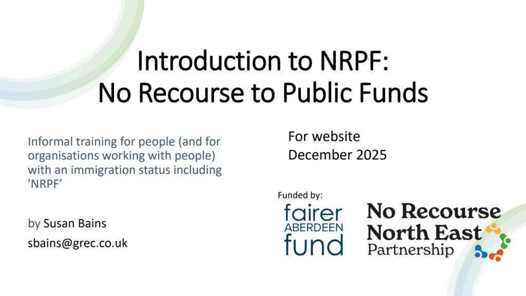 This is a December 2025 copy of our training presentation on “No Recourse to Public Funds” (NRPF) presented to organisations and individuals in the North East. It explains the complex restrictions that prevent many non-UK nationals from accessing state benefits and provides crucial guidance on which support remains universally available.